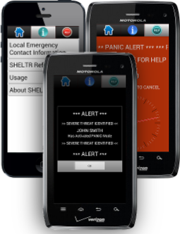 The SHELTR Vision Application is available free for Android or IPhone devices. This state-of-the-art application is designed with the concept that in an emergency, the more personnel that are aware of a situation the better – and that information needs to be made available as quickly as possible with as little effort as possible. The application is customized per organization and is designed to promote threat awareness, notify personnel within an organization when a threat is identified, and give updates of where threats have been identified to assist planning escape routes.